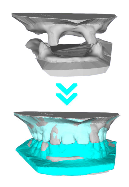 DentalTwin macht Schluss damit. Unsere innovative Technologie ermöglicht die vollautomatisierte, Big Data-basierte Rekonstruktion per OneClick.